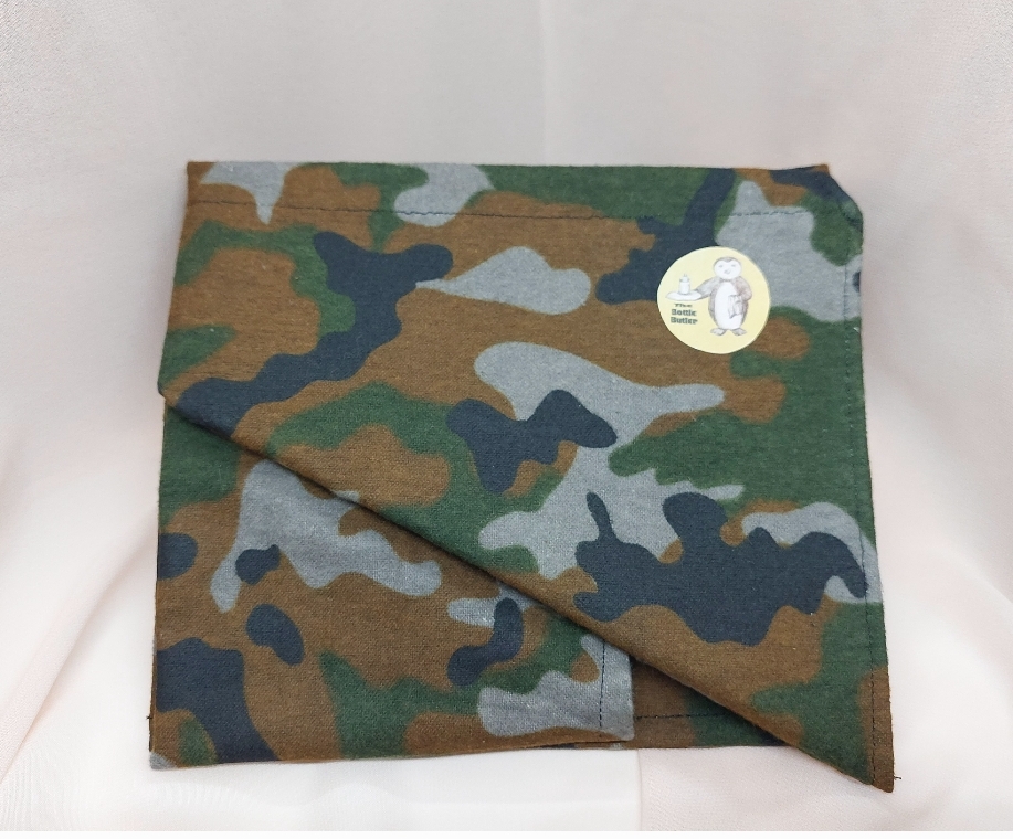 The Bottle Butler is a patented burp cloth bottle holder that “gives you a hand” while you’re bottle feeding your little one! The front pocket is lined with grip fabric and is angled downward for optimal bottle feeding. The back pocket is counter weighted to allow for bottle feeding of up to 8 oz of liquid. This item is machine washable, tumble dry low. Baby shower must have!